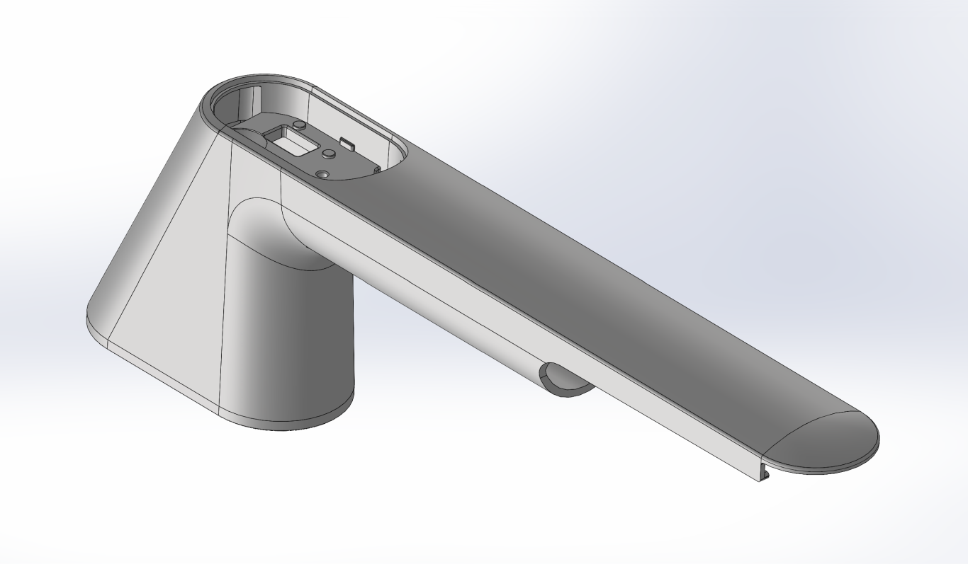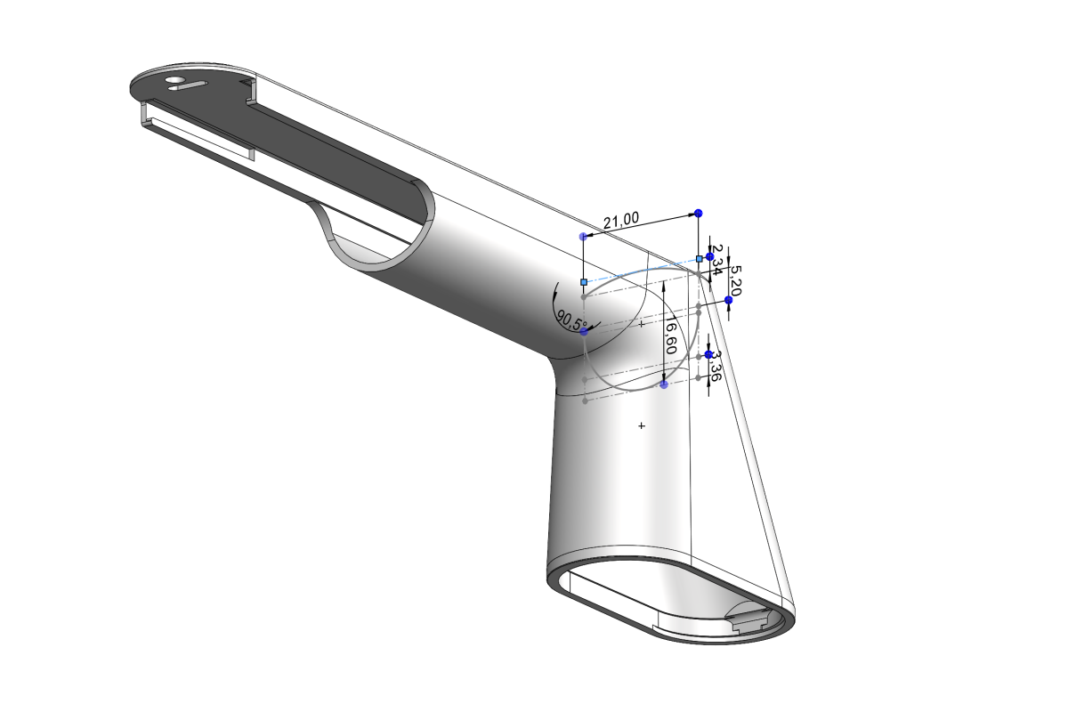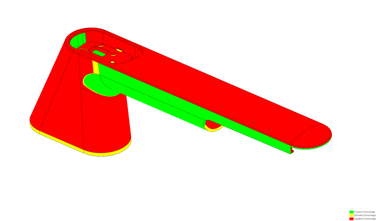 When implementing the volume model, it was necessary to adapt both the outer surfaces and the core element along the handle axis to the specified draft angle of the manufacturing process.