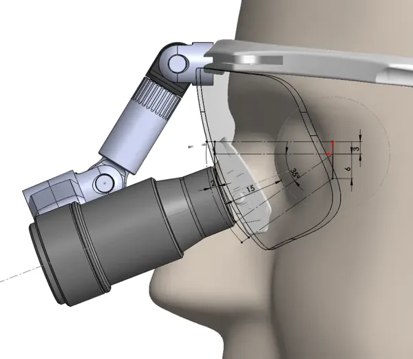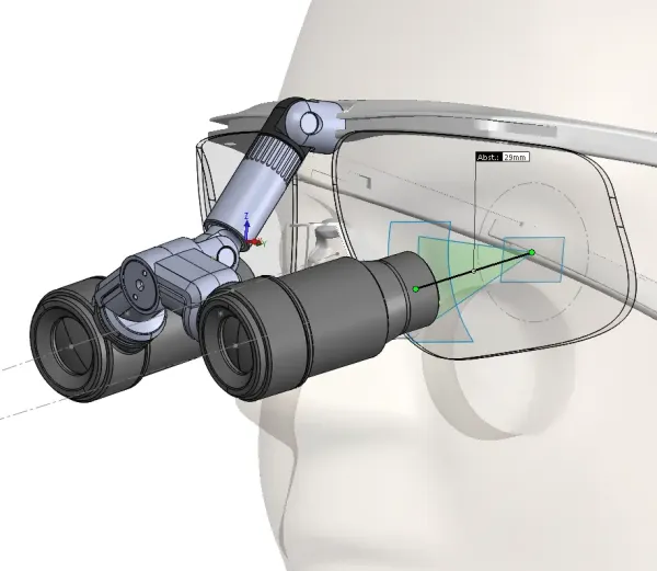 To ensure that the precisely defined optical and ergonomic requirements were always maintained during development, the specifications were incorporated into a mechanically constrained SolidWorks assembly.