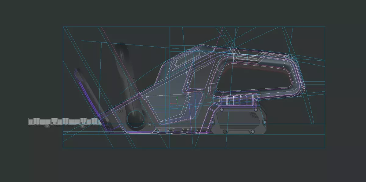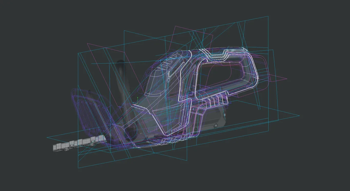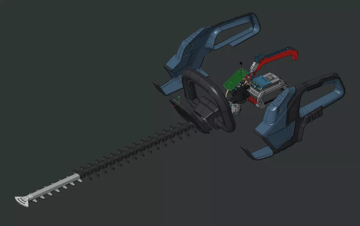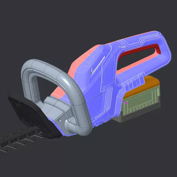 The hedge trimmer's housing is based on a clam-shell design surrounding the technical components. Following this principle, all design and functional elements must be oriented and drafted in the direction of demoulding.